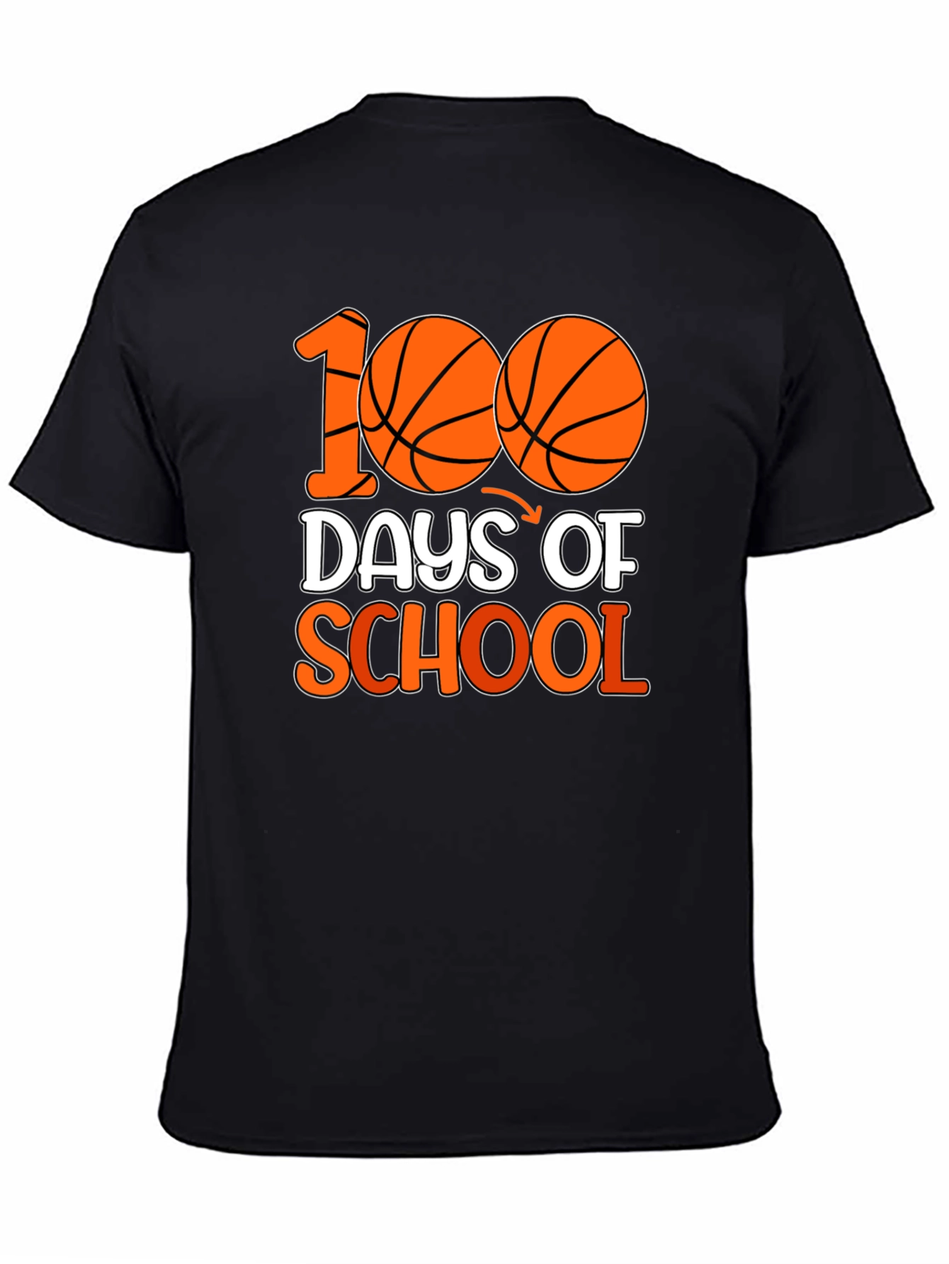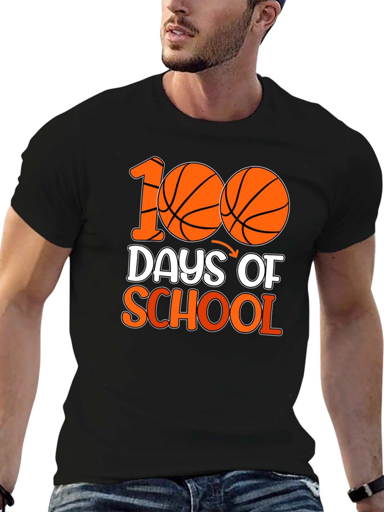 Show your love for basketball and school with this unique graphic t-shirt. The design features the number 100 creatively displayed with basketballs, along with the words "DAYS OF SCHOOL" in a playful font. Made from a comfortable and breathable material, this black t-shirt is perfect for students, teachers, or anyone celebrating 100 days of school. Wear it to school events, basketball games, or as a fun everyday outfit. Let everyone know you're ready to score big in academics and sports!