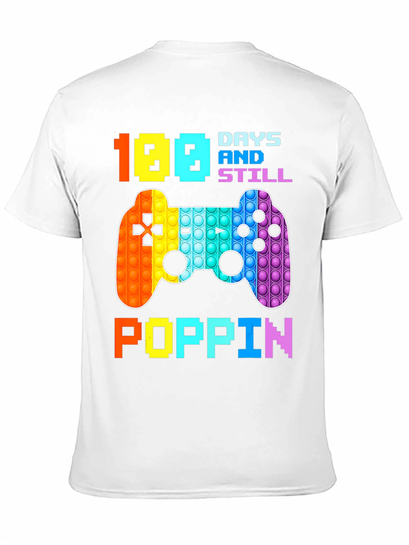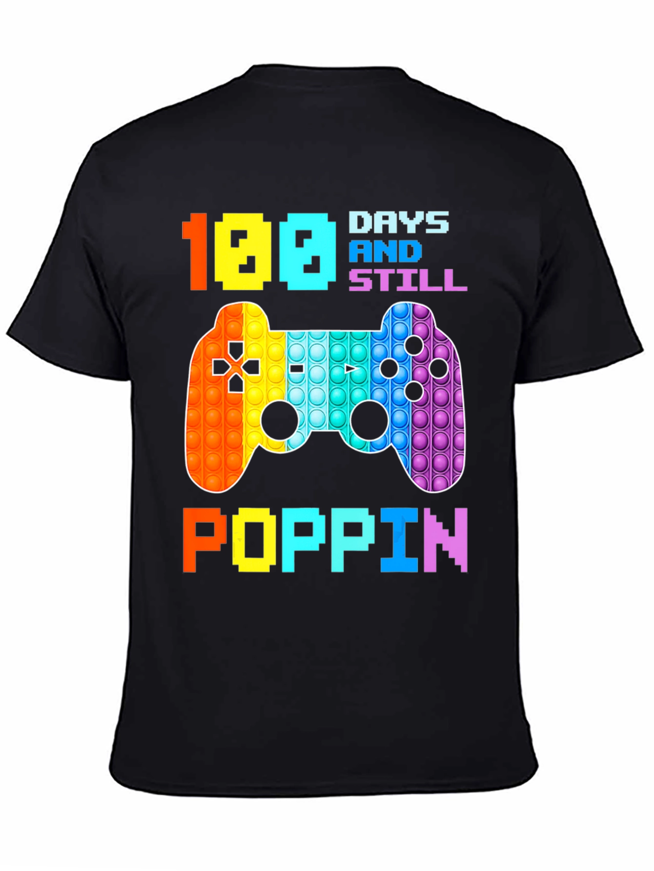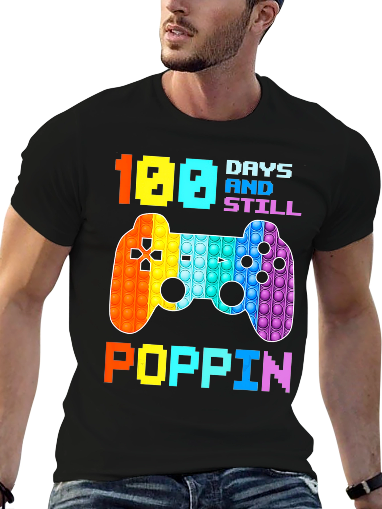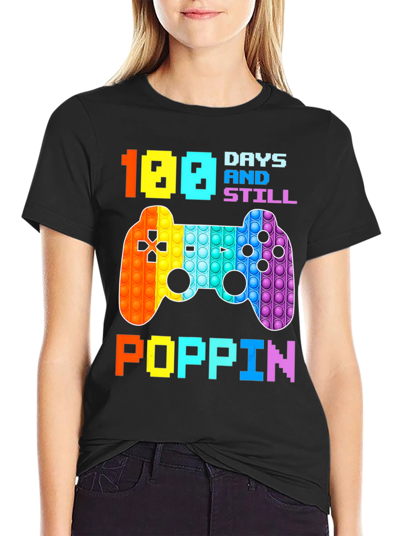 Celebrate 100 days of school or anything fun with this vibrant '100 Days And Still Poppin' T-Shirt! The playful design features pixelated text in bright, eye-catching colors alongside a colorful game controller graphic filled with popping bubbles. This unique shirt is perfect for gamers, students, or anyone who loves a touch of whimsy. Made from a comfortable, breathable fabric, it's ideal for everyday wear, school events, or casual outings. Stand out from the crowd and show off your fun side with this trendy and expressive tee!