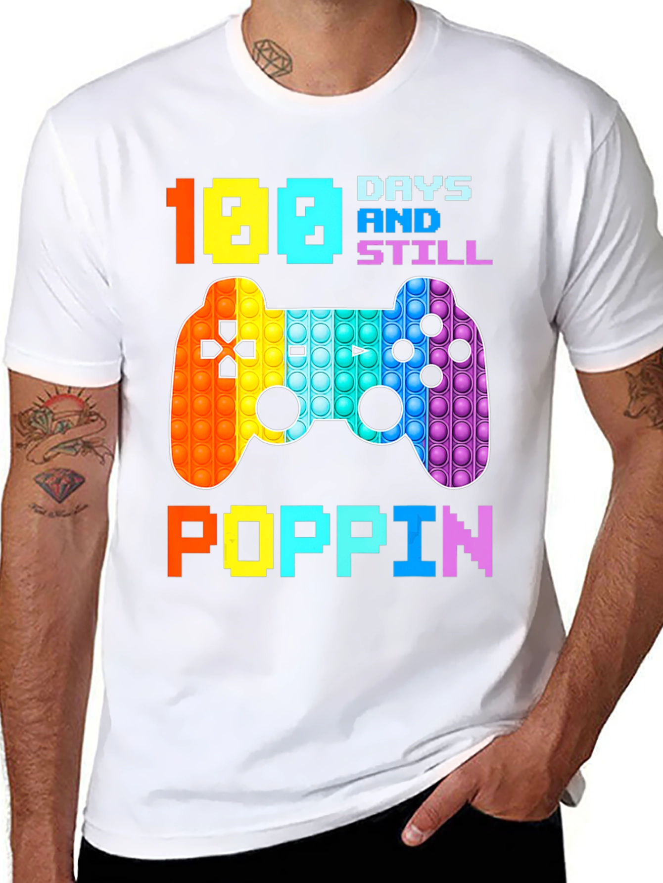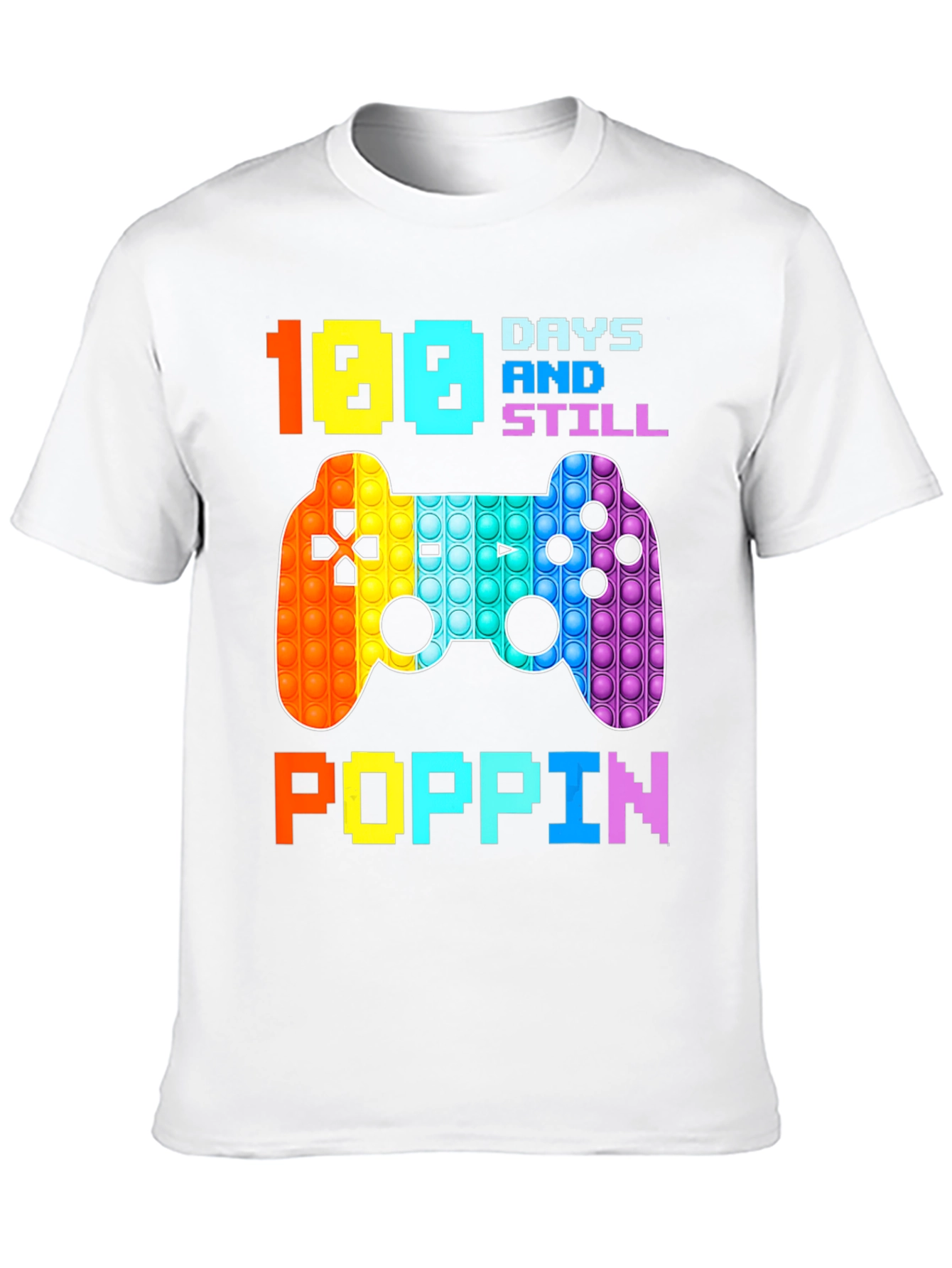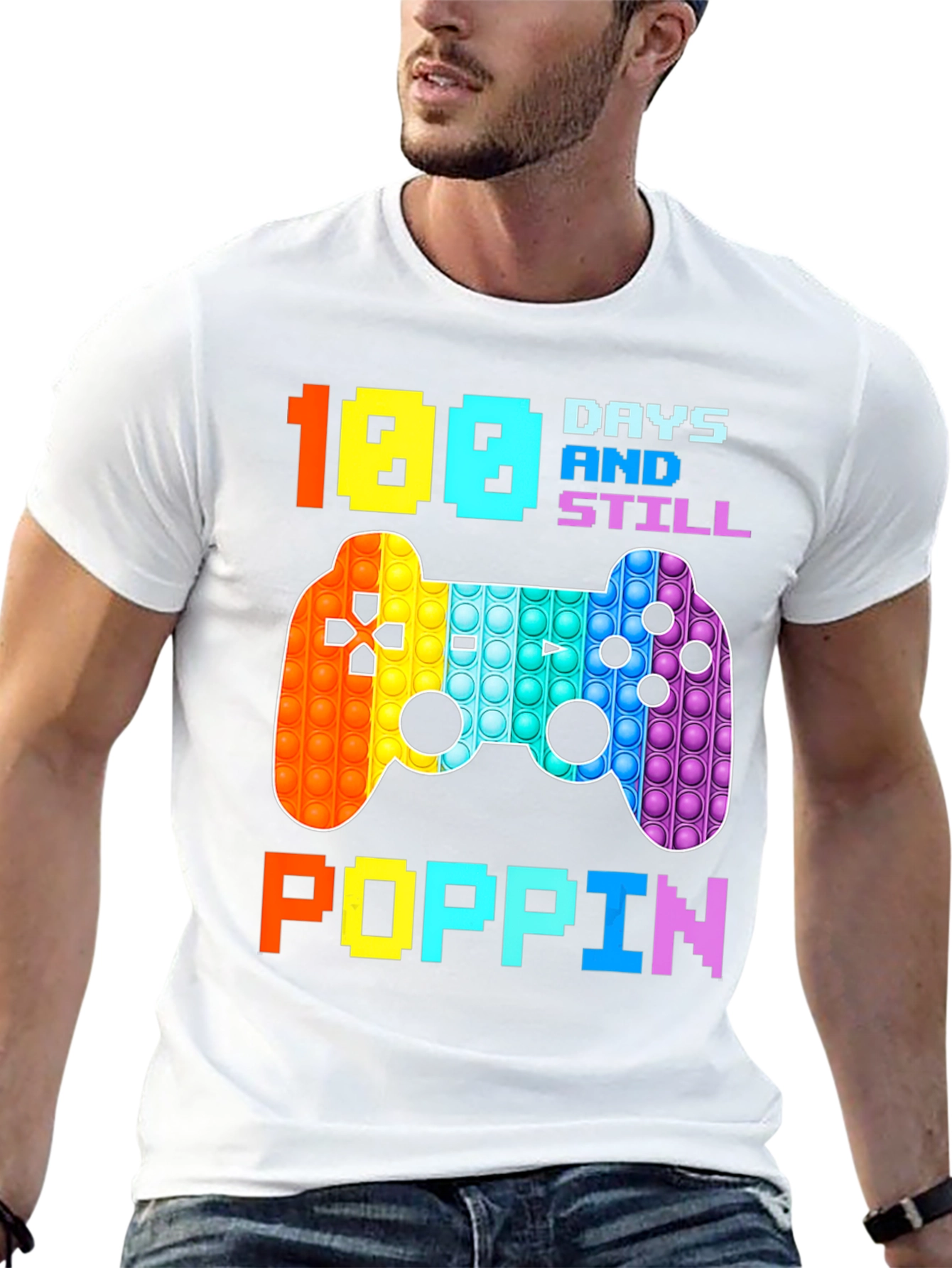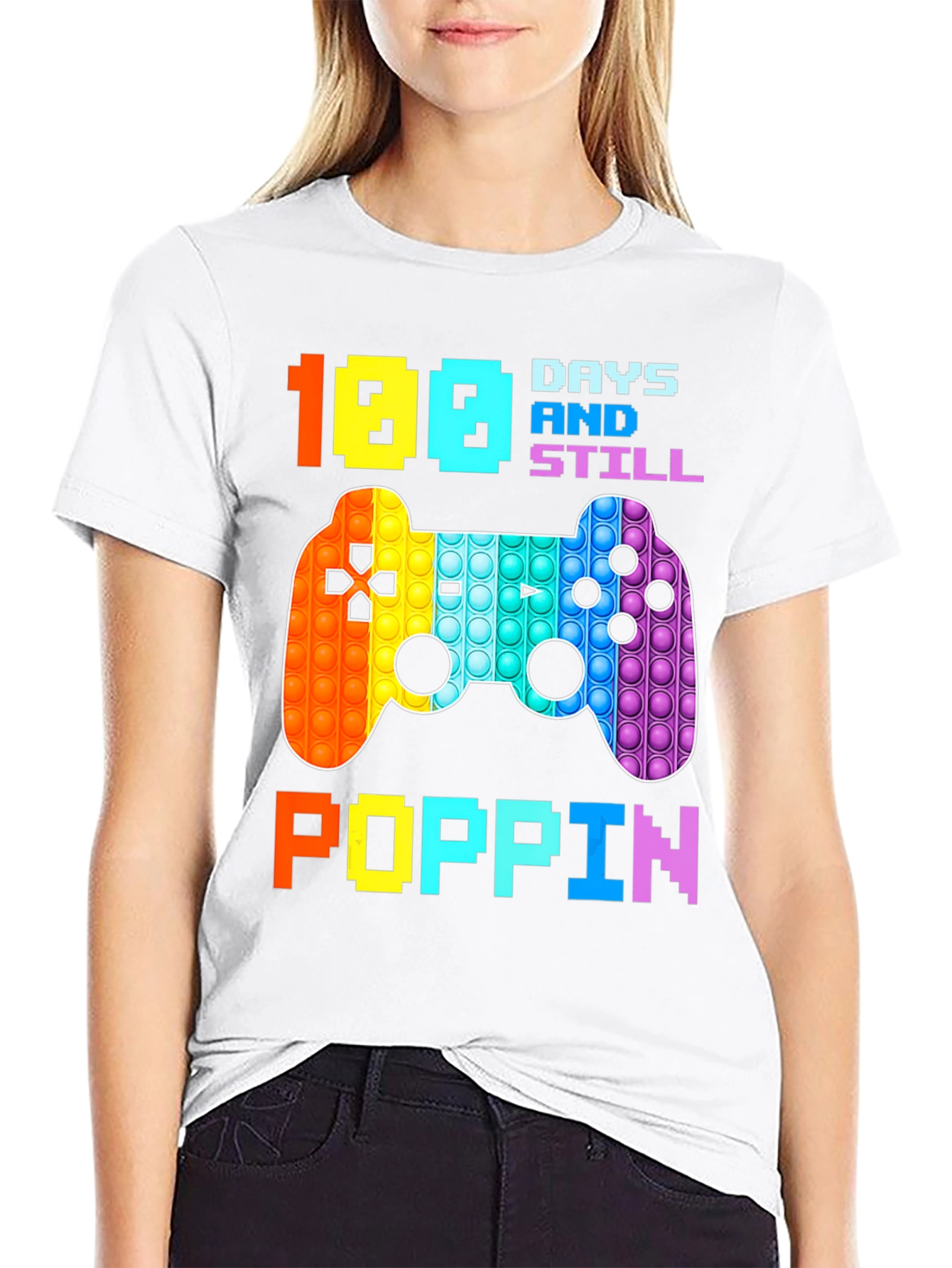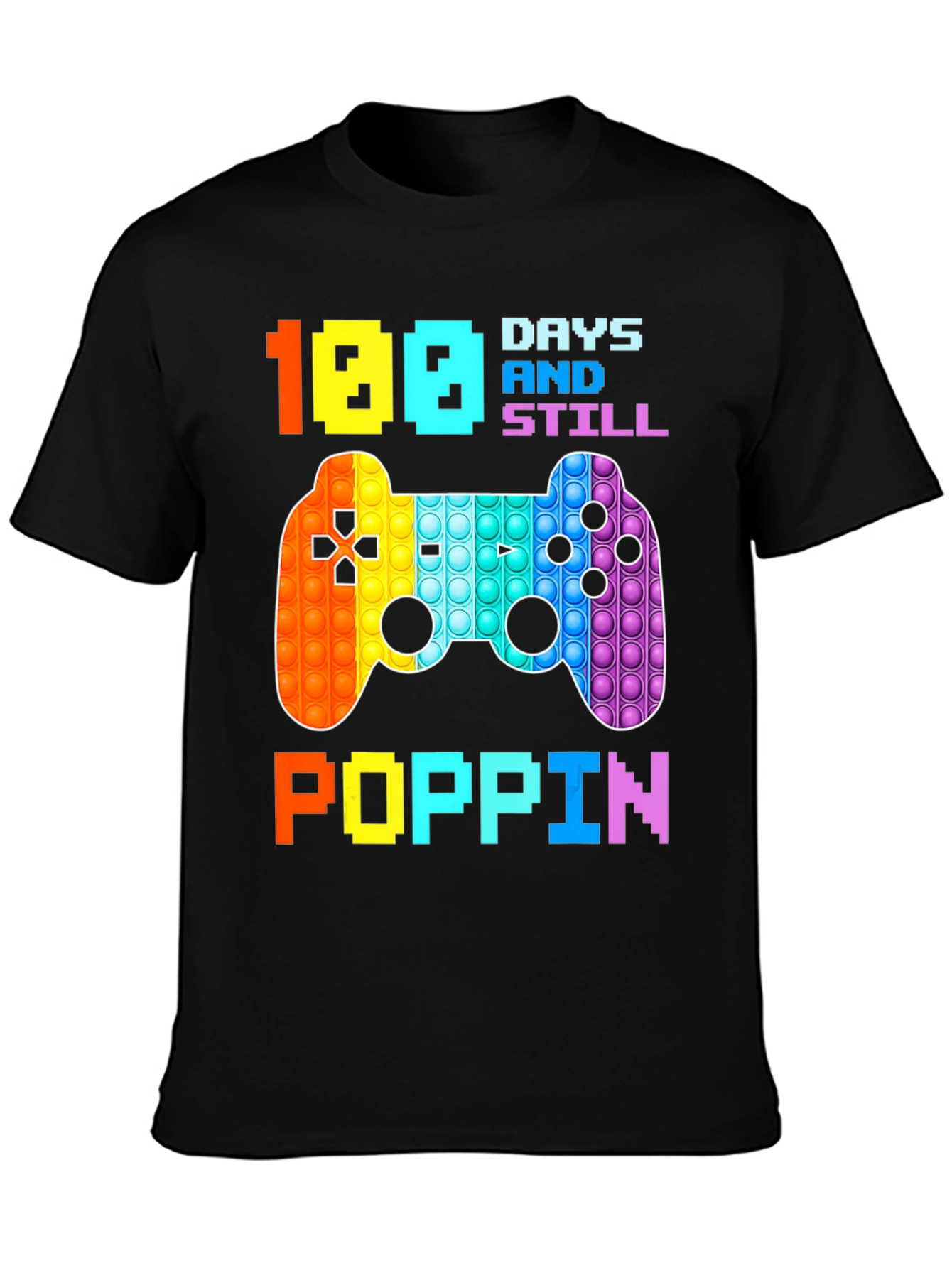 Celebrate 100 days of school or anything fun with this vibrant '100 Days And Still Poppin' T-Shirt! The playful design features pixelated text in bright, eye-catching colors alongside a colorful game controller graphic filled with popping bubbles. This unique shirt is perfect for gamers, students, or anyone who loves a touch of whimsy. Made from a comfortable, breathable fabric, it's ideal for everyday wear, school events, or casual outings. Stand out from the crowd and show off your fun side with this trendy and expressive tee!