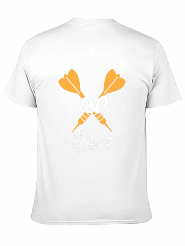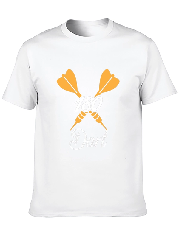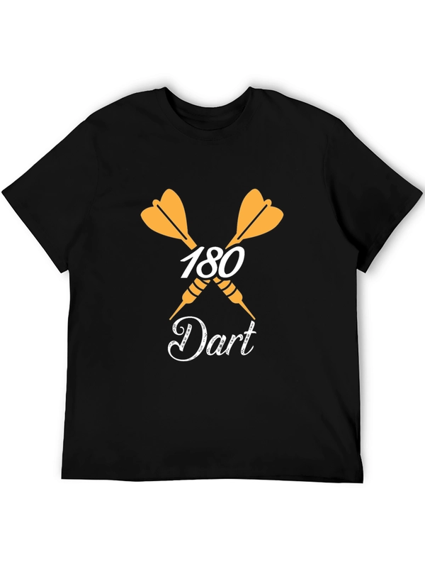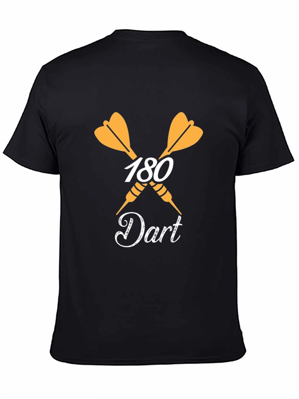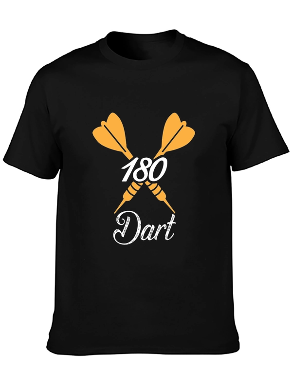 This stylish black t-shirt is perfect for dart enthusiasts. It features a striking graphic design of two crossed yellow darts with the number '180' above the word 'Dart' in a sophisticated white script. The shirt is made from comfortable fabric, ideal for casual wear or showcasing your love for the game at dart events and tournaments. This unique tee makes a great gift for dart players, fans, or anyone who appreciates distinctive and sporty apparel. Show off your passion for darts with this eye-catching and comfortable t-shirt.