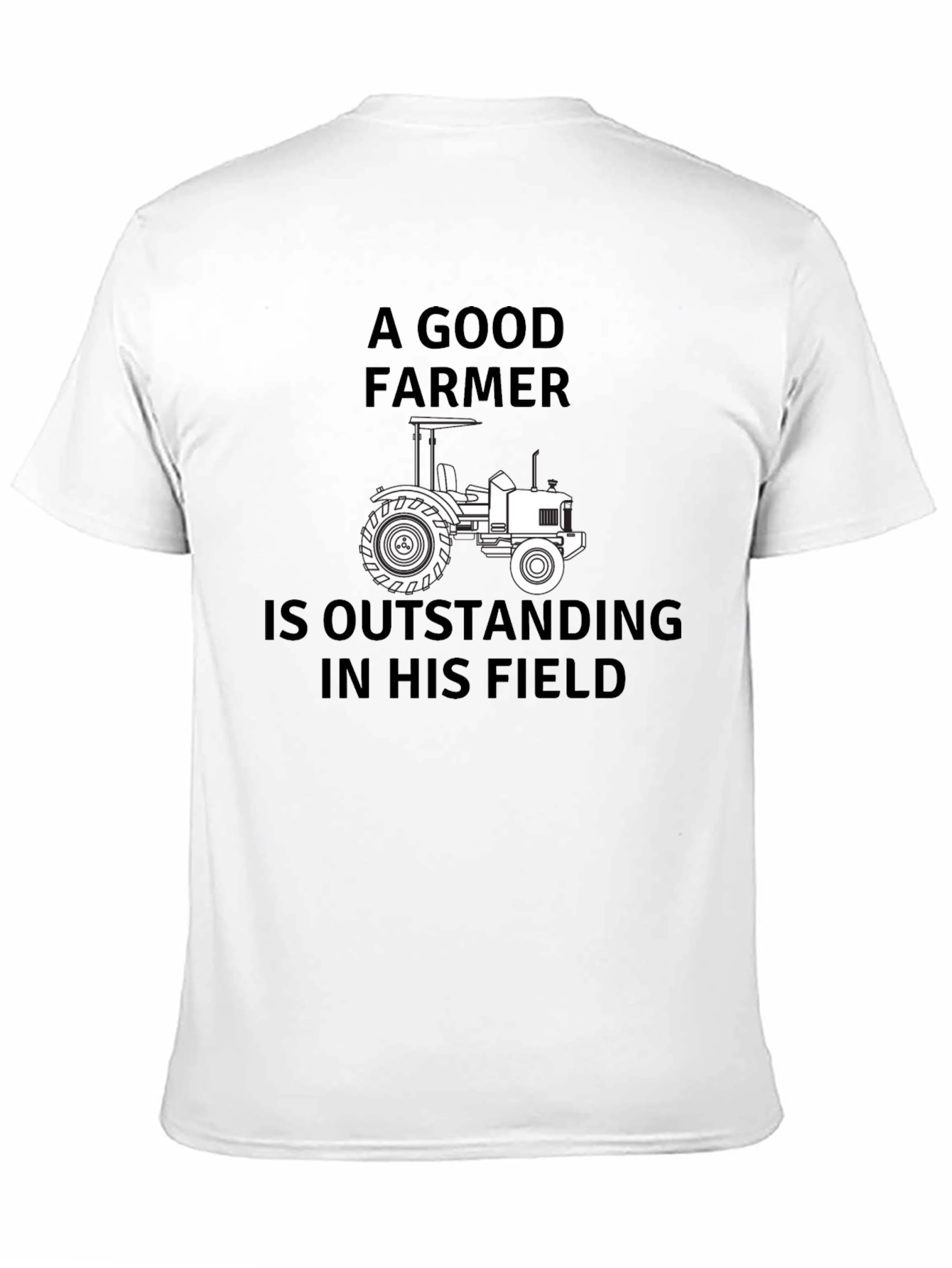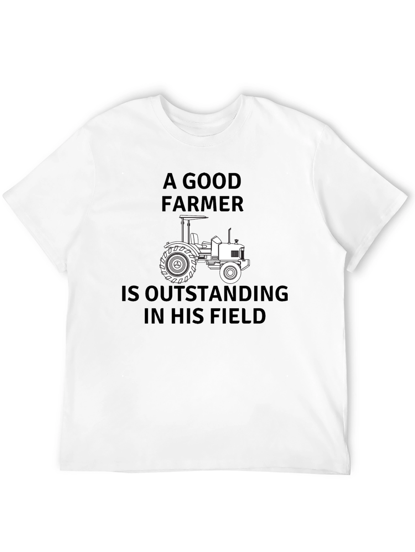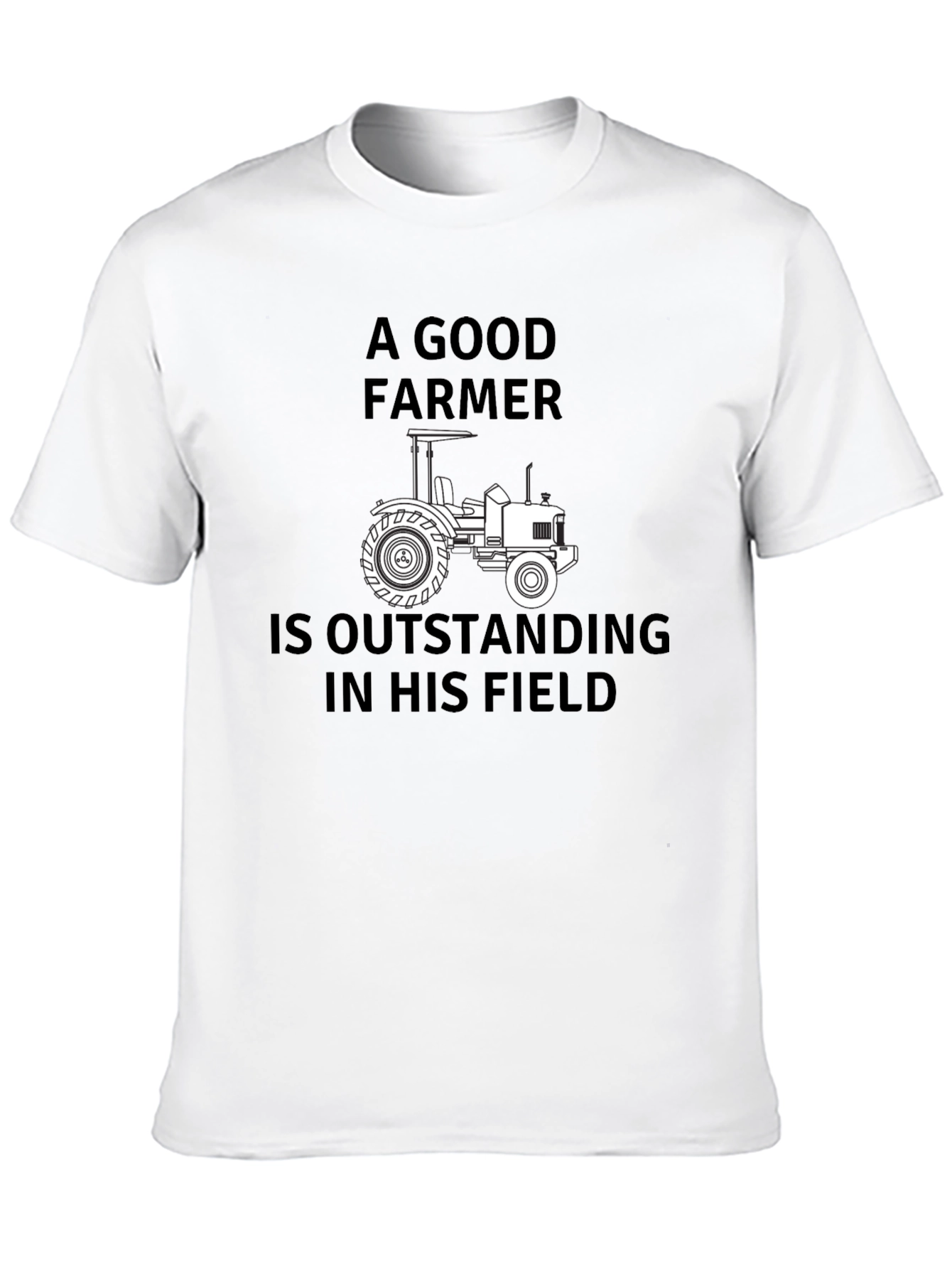 Show off your farming pride with this classic black tee! Featuring a clean design with the witty slogan "A Good Farmer is Outstanding in His Field" accompanied by an illustrated tractor, this shirt is perfect for farmers and agriculture enthusiasts. Made from what appears to be a soft cotton blend, it offers a comfortable fit for everyday wear. Whether you're working on the farm, running errands, or just relaxing at home, this unique t-shirt is sure to make a statement and spark conversations. Get yours today and let everyone know you're a proud and outstanding farmer!