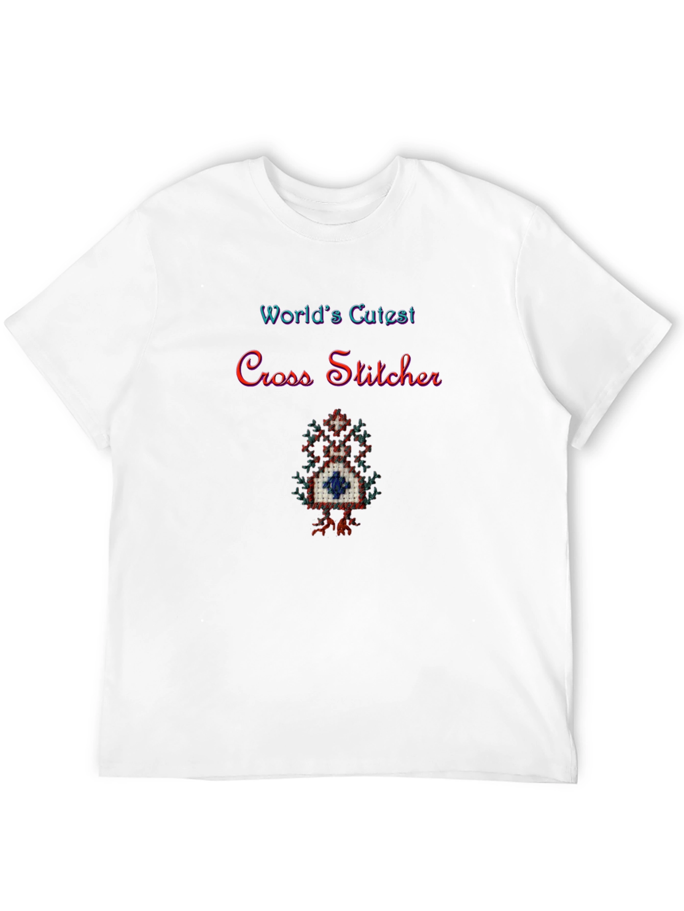Showcase your passion for cross-stitching with this unique t-shirt. The design features the phrase "World's Cutest Cross Stitcher" in vibrant, eye-catching fonts. Below the text, a detailed cross-stitch-inspired graphic adds a touch of homespun charm. Made from a comfortable, breathable fabric, this t-shirt is perfect for everyday wear, crafting meetups, or as a thoughtful gift for the cross-stitch enthusiast in your life. Let the world know about your beloved hobby with this stylish and comfortable tee.